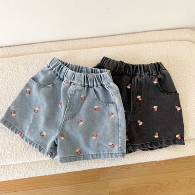 앙뜨제이.팝콘자수청반바지